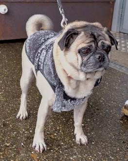 Lup ist ein ruhiger, zutraulicher und freundlicher Mops-Rüde. Er wünscht sich viel Zuwendung und Menschen mit Geduld